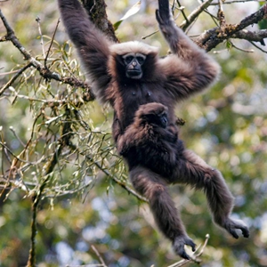 天行长臂猿(也称高黎贡白眉长臂猿)是唯一一种由中国科学家命名的类人猿,为国家一级重点保护动物,在国内种群数量不足150只,仅分布于高黎贡山自然保护区等狭小区域。