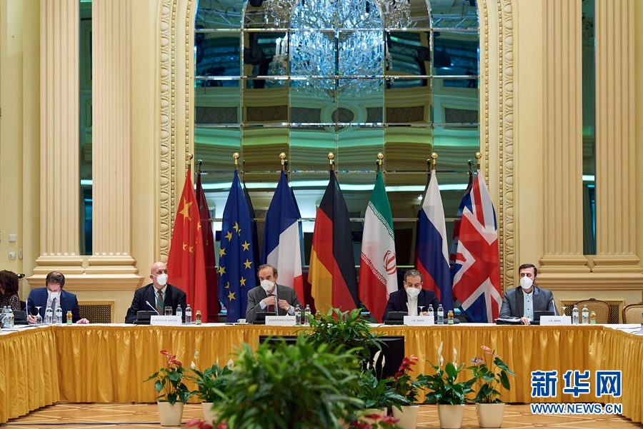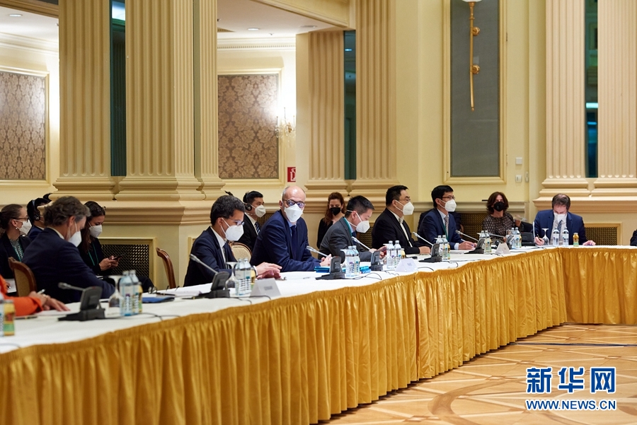 这是5月25日在奥地利维也纳拍摄的伊核全面协议联委会新一轮恢复履约谈判政治总司长级会议现场。 新华社发(欧盟驻维也纳代表团供图)