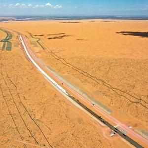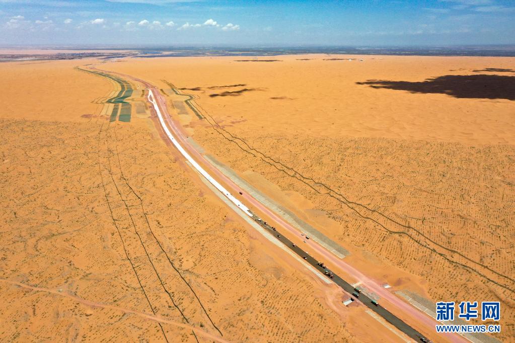 位于宁夏境内的乌玛高速青铜峡至中卫段A10标段在施工中(2020年7月10日摄,无人机照片)。新华社记者 冯开华 摄