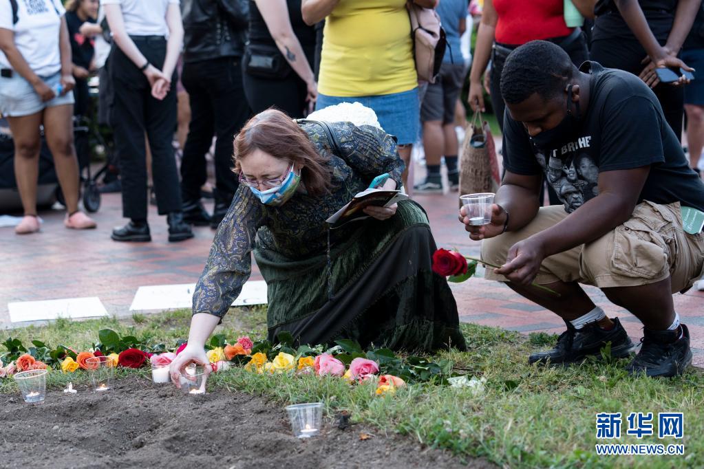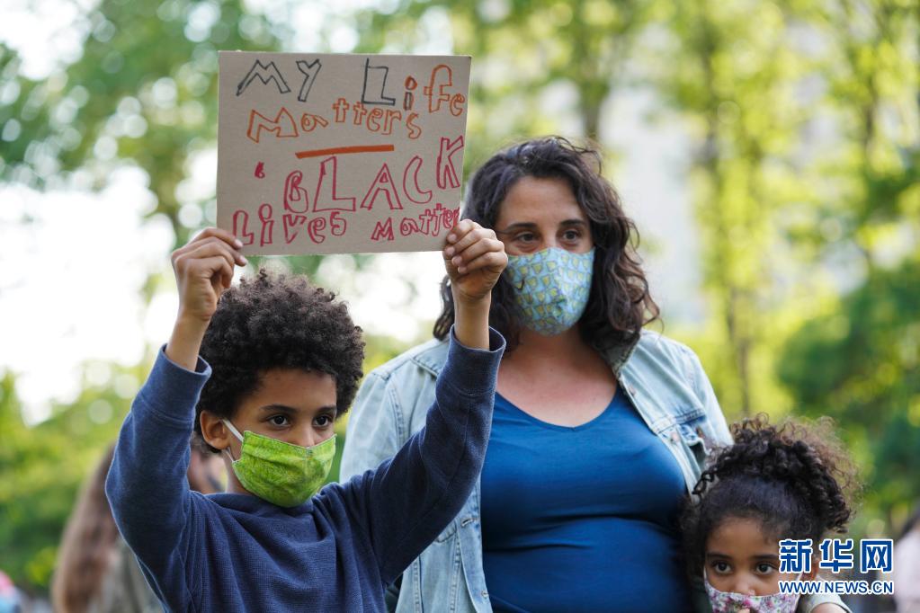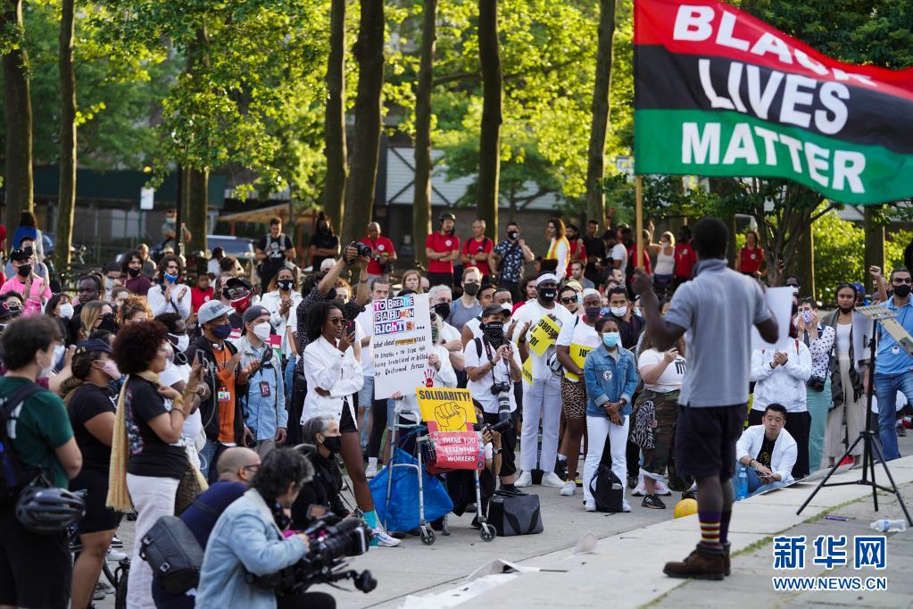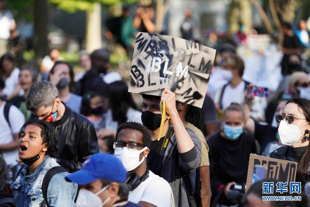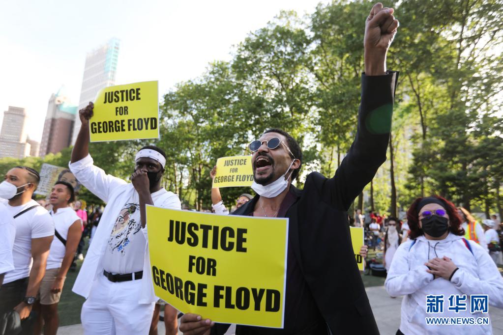 5月25日,人们在美国纽约的卡德曼广场公园参加悼念弗洛伊德的集会。新华社记者 王迎 摄