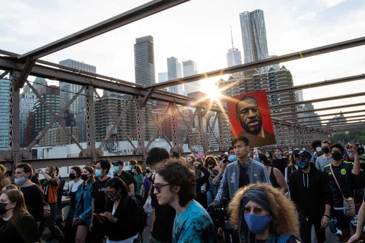 5月25日,人们在美国纽约参加悼念弗洛伊德集会活动。新华社/美联