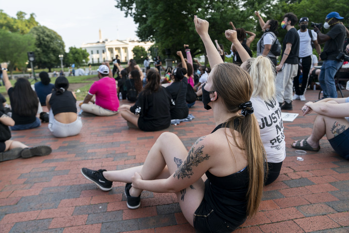 5月25日,人们在美国华盛顿白宫附近参加悼念弗洛伊德的集会。新华社记者 刘杰 摄
