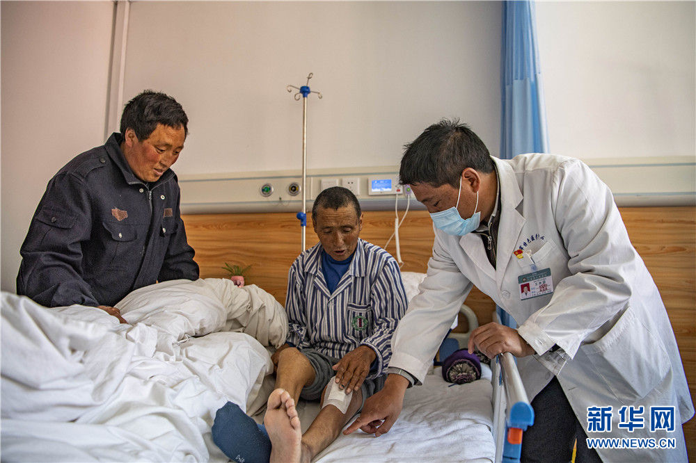 在西藏昌都市八宿县人民医院,医生给刚接受了膝关节置换手术的患者做检查(3月29日摄)。 新华社记者 孙非 摄