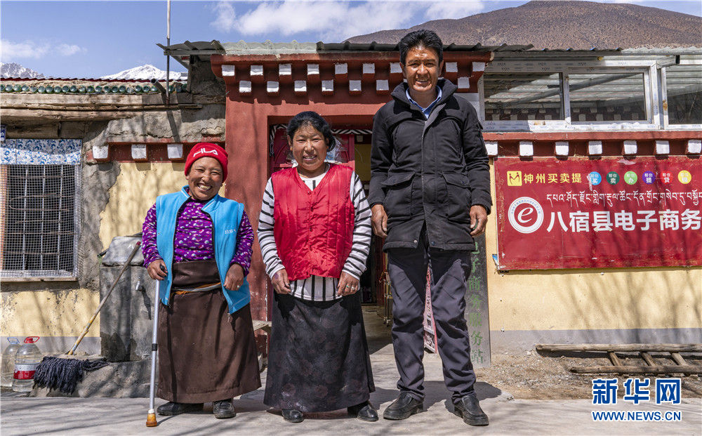 在西藏昌都市八宿县吉达乡同空村,边巴措姆(中)和家人合影(3月29日摄)。 新华社记者 孙非 摄