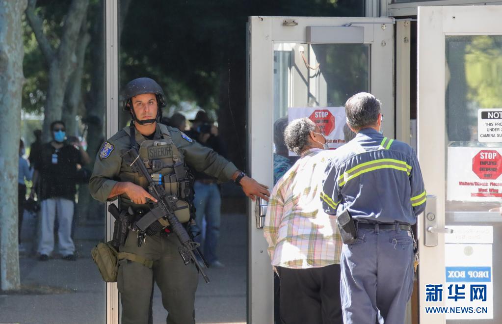5月26日,在美国加利福尼亚州圣何塞,人们在枪击事件后前往临时设立的安全地点。新华社发(董旭东摄)