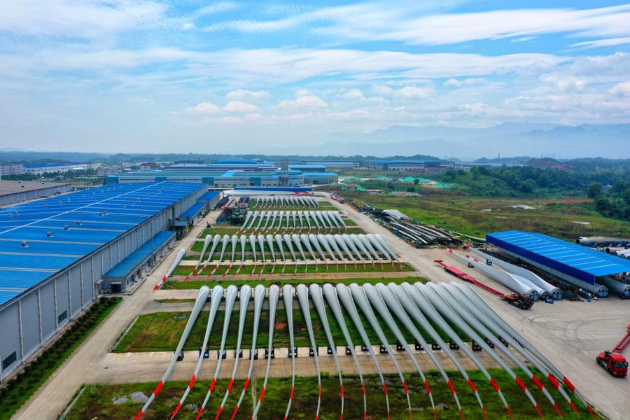 大型风电叶片生产企业中材科技(萍乡)风电叶片有限公司航拍景象。(王强摄 新华社通联照片)