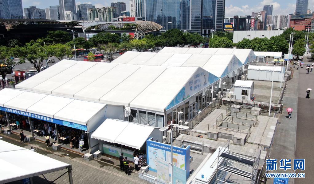 5月27日拍摄的广州天河体育中心新冠疫苗临时接种点。为满足新冠疫苗接种需求,广州市积极做好新冠疫苗接种组织工作,保障疫苗接种有序进行。新华社记者 卢汉欣 摄
