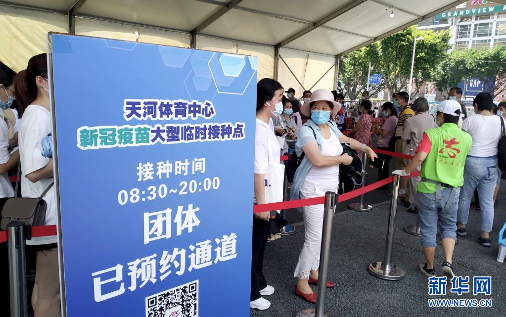 5月27日,市民在广州天河体育中心新冠疫苗临时接种点排队接种疫苗。为满足新冠疫苗接种需求,广州市积极做好新冠疫苗接种组织工作,保障疫苗接种有序进行。新华社记者 卢汉欣 摄