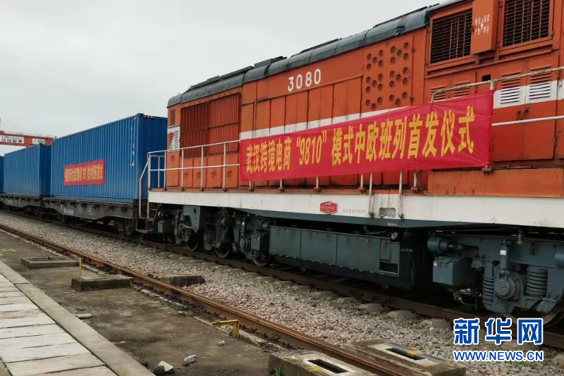 图为武汉“跨境电商出口海外仓”产品首次搭乘中欧班列前往欧洲 新华网发 李伟摄