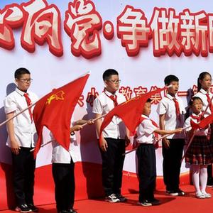 当日,河北省石家庄市神兴小学举行以“童心向党 争做新时代好队员”为主题的少先队员入队仪式,小学生们在“六一”前夕戴上红领巾,光荣加入中国少年先锋队。