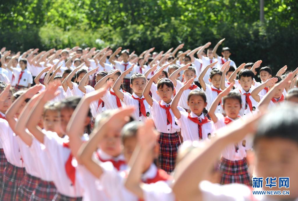 当日,河北省石家庄市神兴小学举行以“童心向党 争做新时代好队员”为主题的少先队员入队仪式,小学生们在“六一”前夕戴上红领巾,光荣加入中国少年先锋队。
