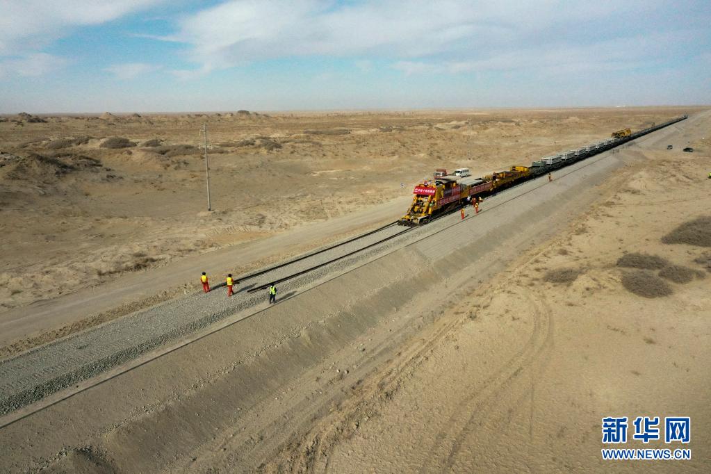 新疆和若铁路铺轨现场(2月2日摄)。新华社记者 阿曼 摄