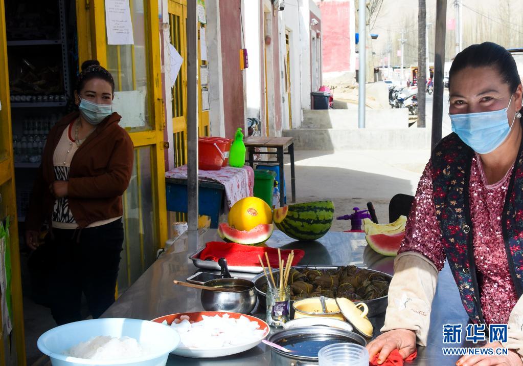 这是新疆和田县喀让古塔格村一家小吃店铺(4月7日摄)。新华社记者 张晓龙 摄