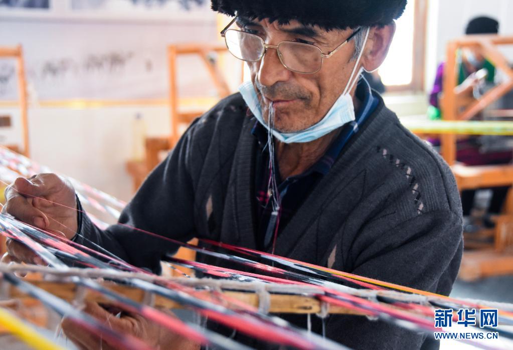 艾德莱斯绸工匠艾麦尔·艾力在接丝线(3月10日摄)。新华社记者 张晓龙 摄