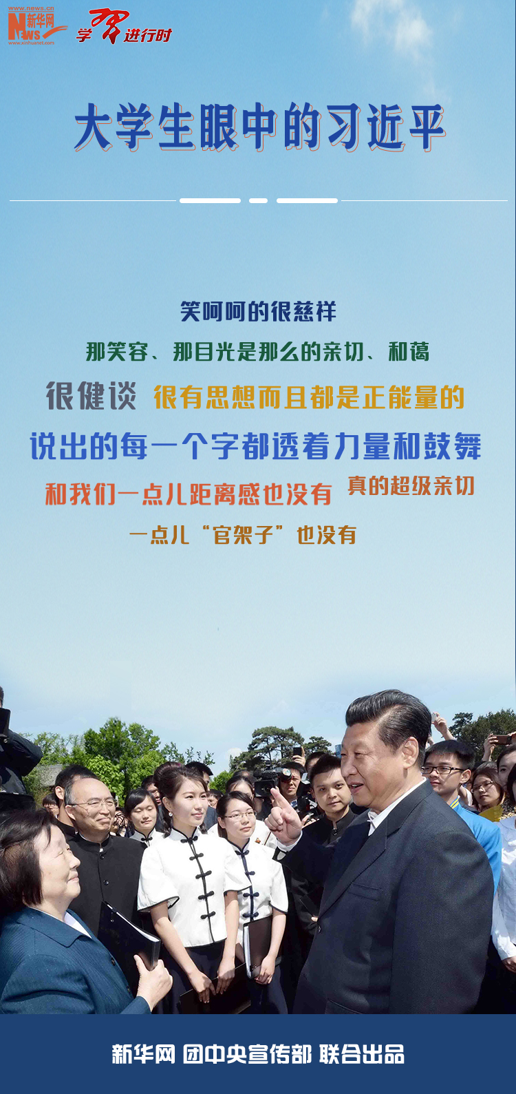 现在回想起来,习主席真是亲切,始终微笑地看着我,一点儿也没有领导架子。(潘宜东,南昌大学材料学院2006级本科生)