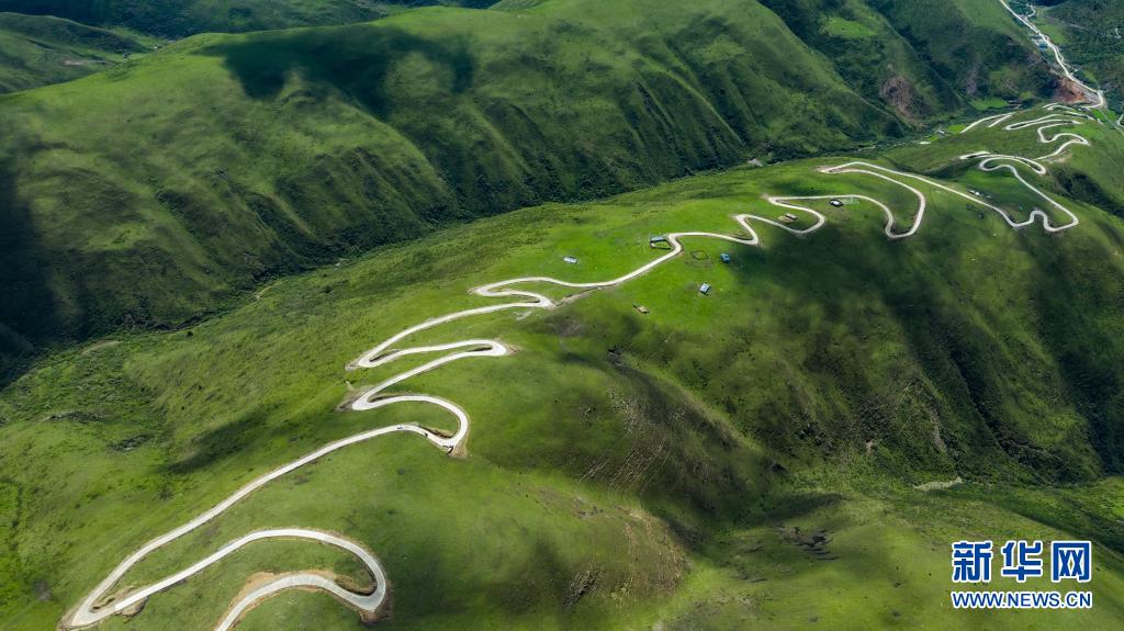 位于四川省阿坝藏族羌族自治州壤塘县境内的“上南天路”(2020年6月13日摄,无人机照片)。新华社记者 沈伯韩 摄