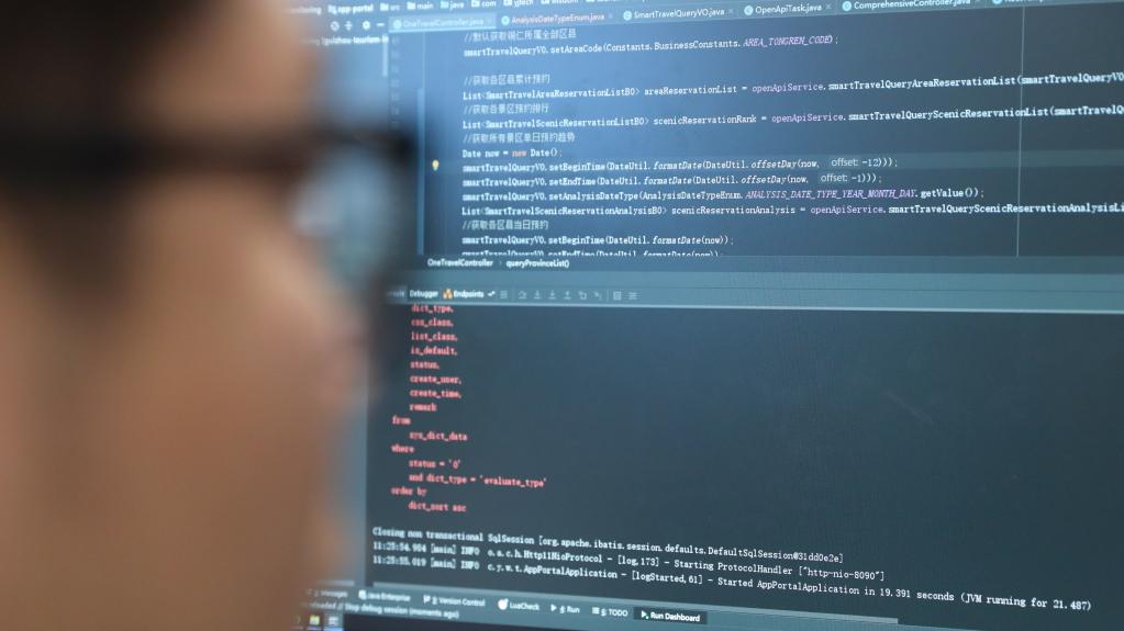 5月27日,工作人员在“一码游贵州”全域智慧旅游平台后台编写软件代码。新华社记者 欧东衢 摄