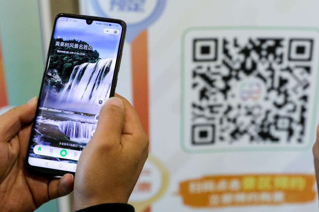 5月27日,市民在通过“一码游贵州”全域智慧旅游平台了解景区信息。新华社记者 欧东衢 摄