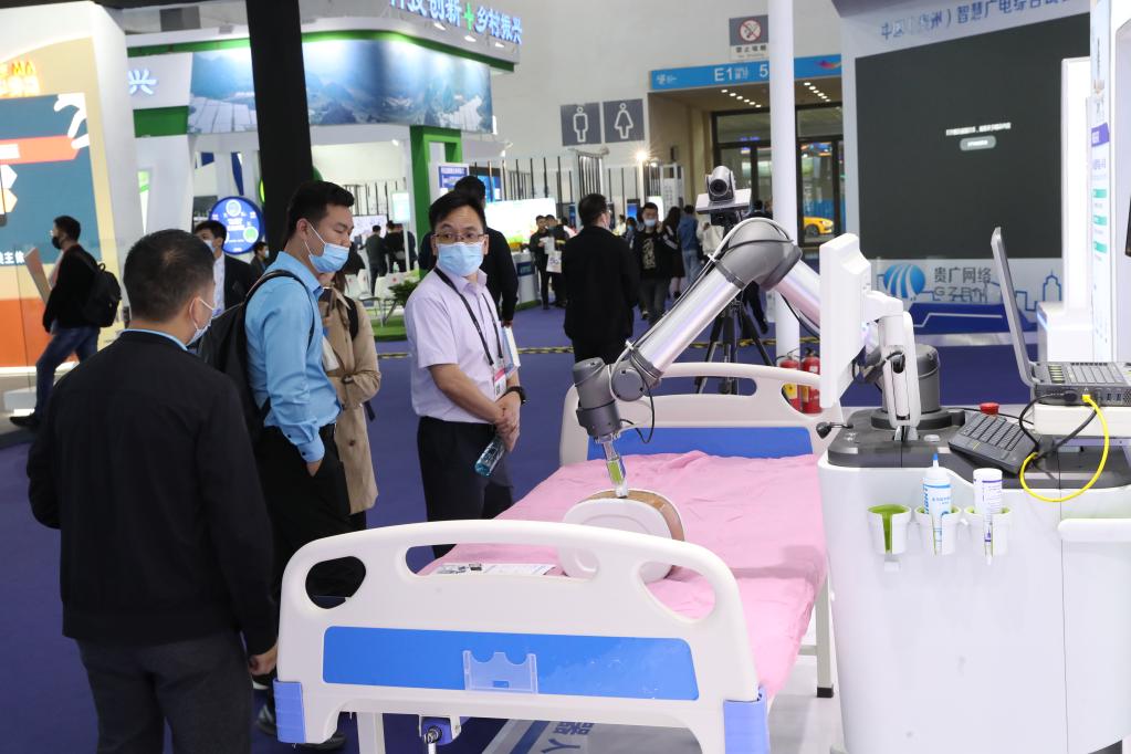5月26日,参会者在数博会上了解5G远程超声机器人诊疗技术。新华社记者 欧东衢 摄