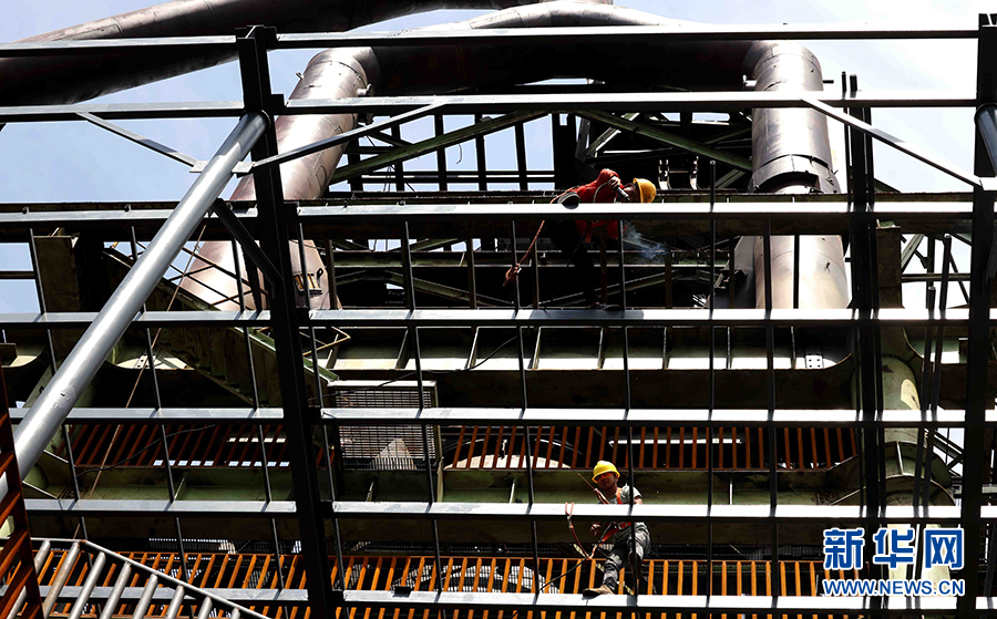 5月27日,在合肥东部新中心的马(合)钢高炉区,工人在对遗存工业建构筑物进行钢结构顶棚焊接。
