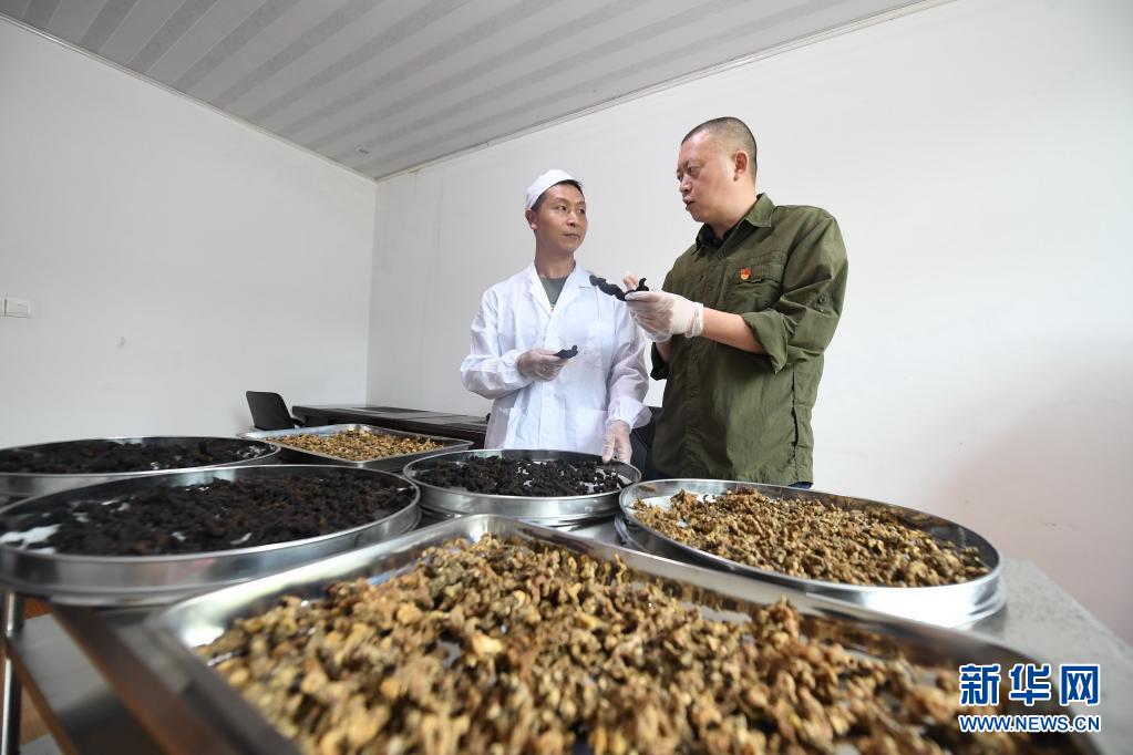 5月28日,建瓯市林权改革发展服务中心的科技特派员陈国兴(右)在建瓯市玉山镇上房村给村民讲解中药材黄精加工方法。