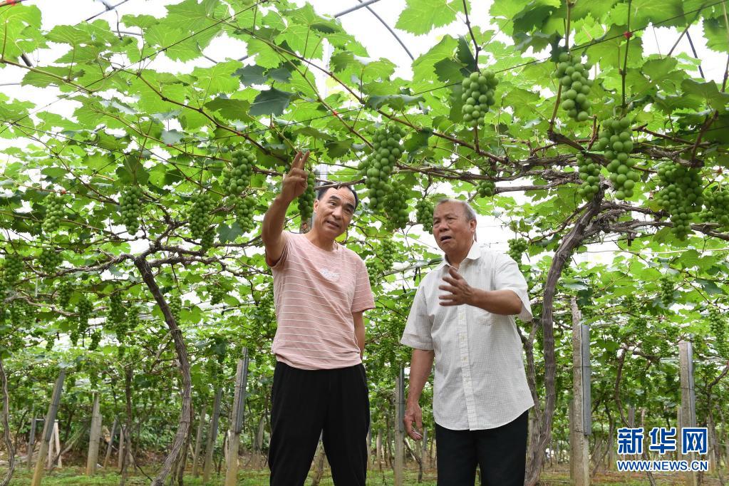 5月27日,人称“葡萄痴”的科技特派员谢福鑫(右)在福建省南平市建阳区考亭村一处葡萄园里指导果农。