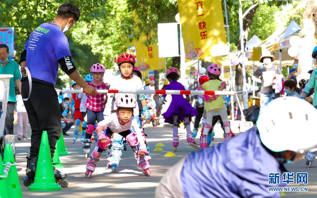 5月29日,小朋友在中国儿童中心的活动上体验轮滑运动。