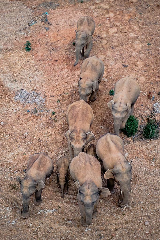 5月28日在云南省玉溪市峨山县境内拍摄的象群(无人机照片)。