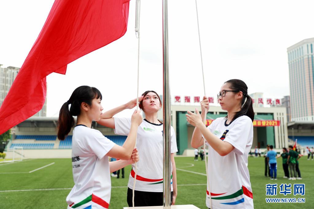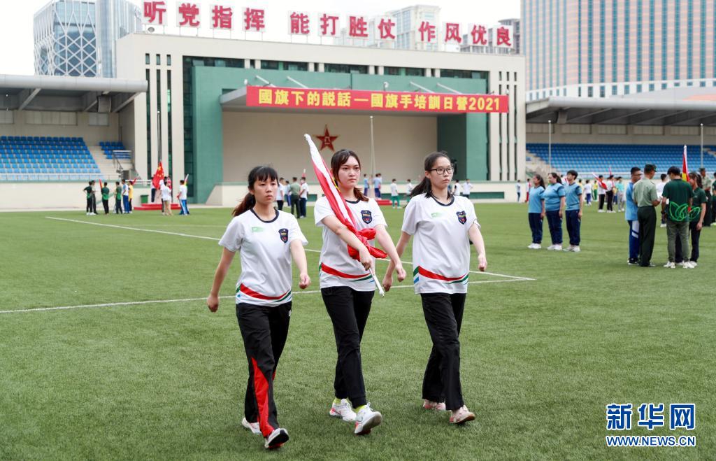 学生在升旗仪式训练中(5月29日摄)。新华社发(陈帅 摄)