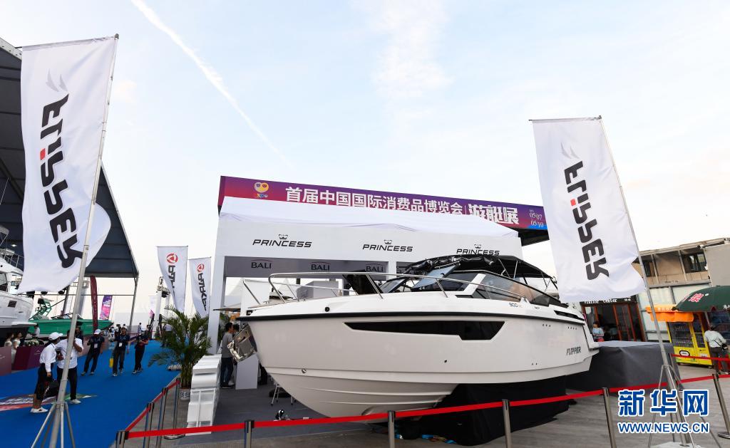 这是首届消博会游艇展上展出的游艇(5月7日摄)。新华社记者 杨冠宇 摄
