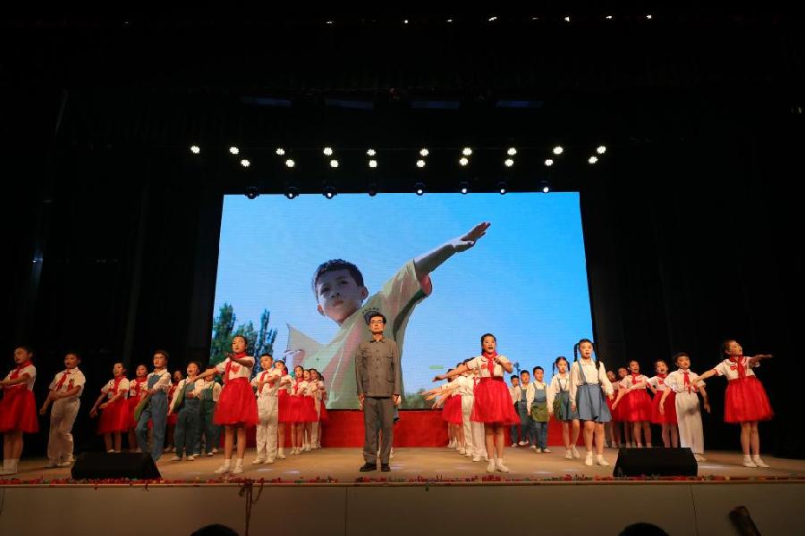 2021年5月29日,新安小学师生在“红色基因代代传”全国青少年诵读党史故事(淮安区专场)活动中表演新旅故事情景剧《燃烧的信念》。纪星名 摄