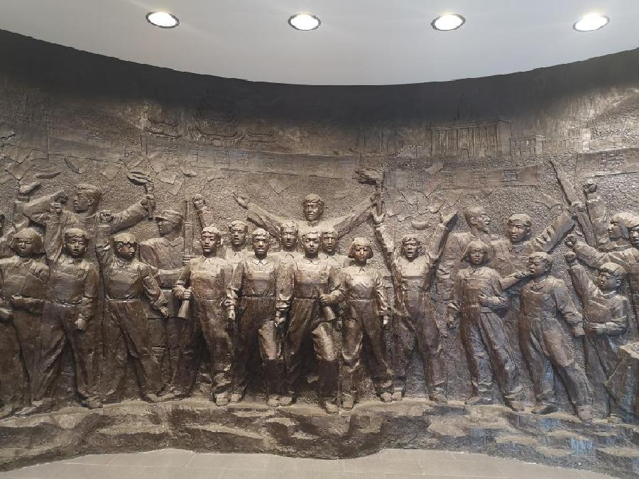 在位于新安小学内的新安旅行团历史纪念馆,群雕“一群小好汉”生动活泼、引人注目。