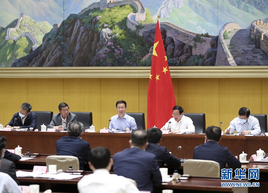 6月1日,推动长三角一体化发展领导小组全体会议在北京召开。中共中央政治局常委、国务院副总理、推动长三角一体化发展领导小组组长韩正主持会议并讲话。新华社记者 丁海涛 摄
