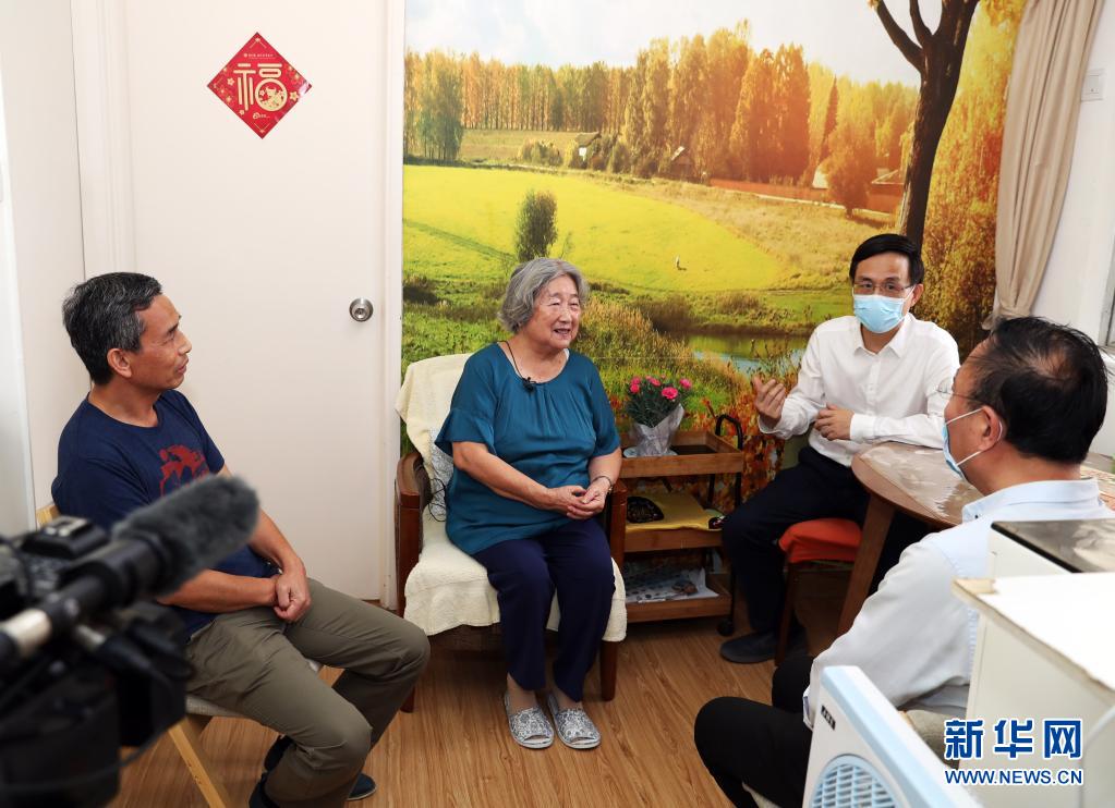 黄作梅的夫人雷善儒(左二)、儿子黄伟建(左一)接受新华社记者专访(5月11日摄)。新华社记者李钢摄