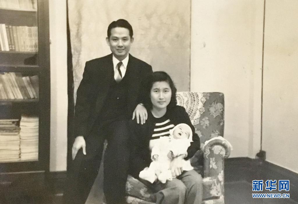 黄作梅一家三口合影,婴儿为幼年黄伟建(资料照片)。新华社发(受访者提供)