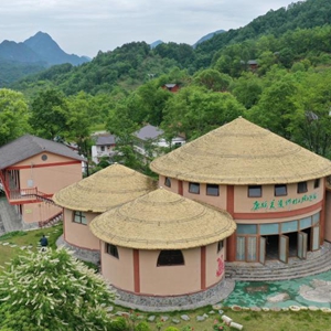 位于甘肃省陇南市康县王坝镇何家庄村的康县美丽乡村王坝主题馆(5月21日摄,无人机照片)。新华社记者 陈斌 摄