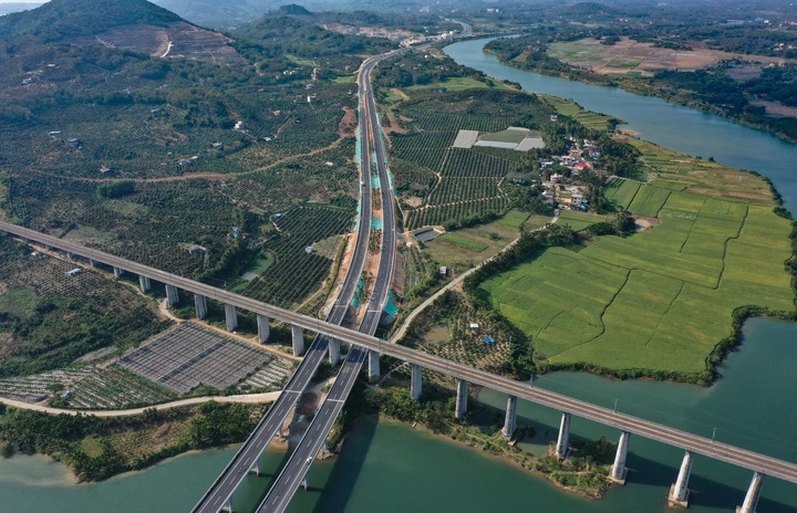 海南山海高速俯瞰。(新华社记者郭程摄)