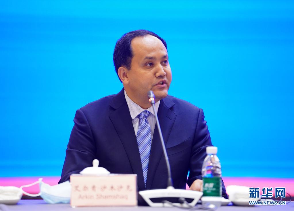 6月3日,新疆大学法学院副院长艾尔肯·沙木沙克在发布会上介绍情况。新华社记者 邢广利 摄