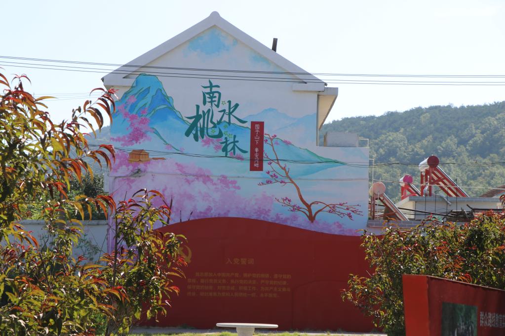 南水桃林村有一条36米长的文化长廊,展示着这个村的村居文化和特色风情。“步步花开,点亮每一寸时光;累累硕果,穿越深春浅夏。清风入雨,四季如诗;目光所及,皆为风物”,诗意的简介文字中,生机勃勃的乡村图景逐渐展现。