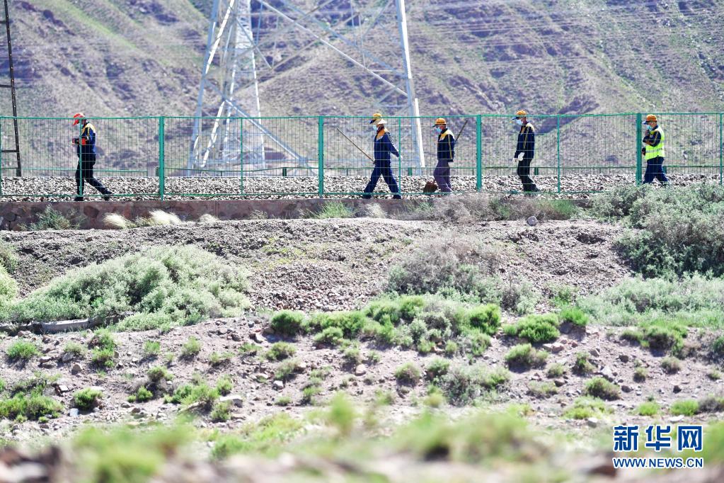 6月4日,铁路部门工作人员在事发路段巡查。新华社记者 陈斌 摄