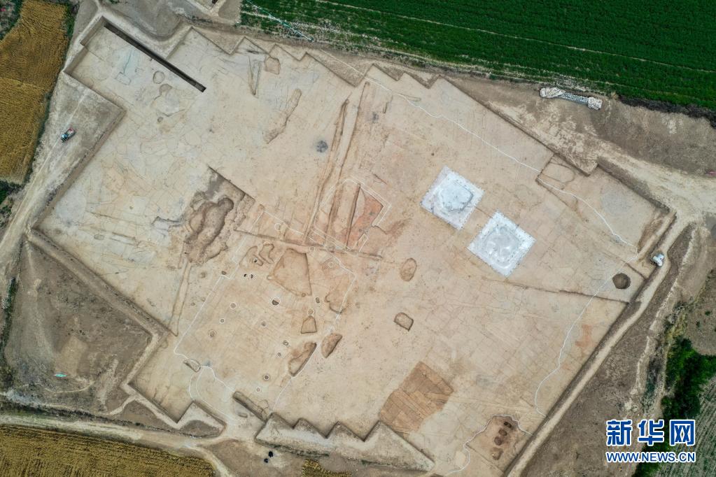 陶寺遗址宫城内的大型夯土建筑基址(6月3日摄,无人机照片)。新华社记者 曹阳 摄