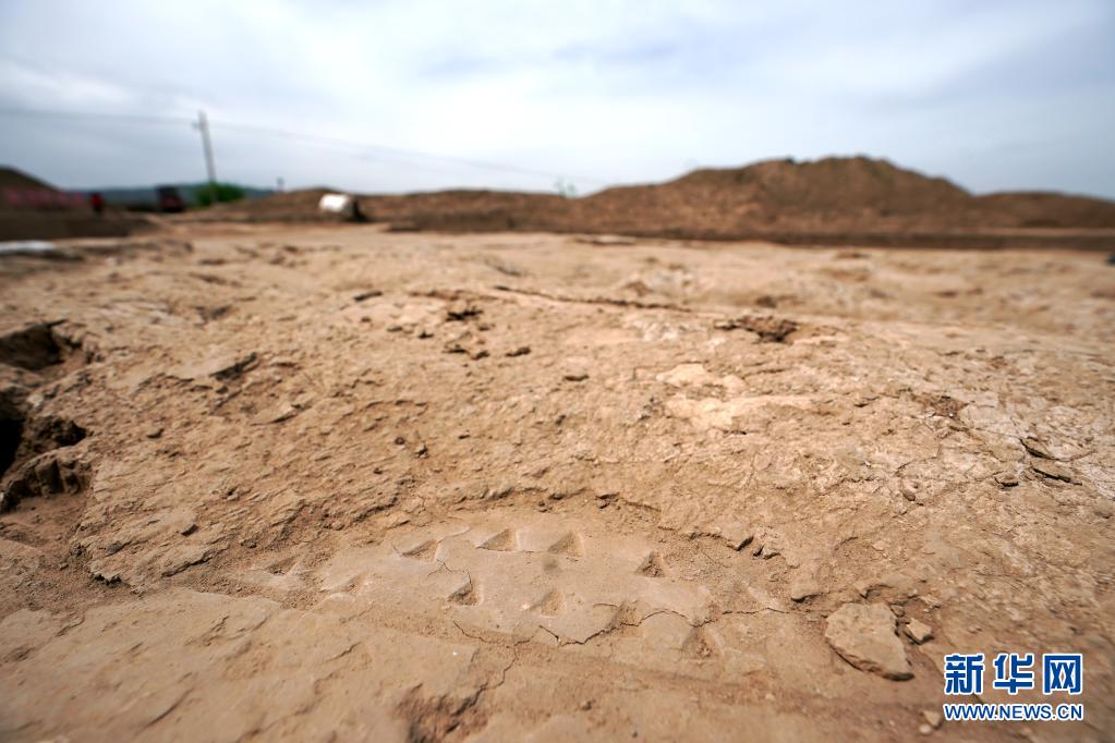 陶寺遗址宫城内大型夯土建筑基址上的房址“装修”的痕迹(6月3日摄)。新华社记者 詹彦 摄