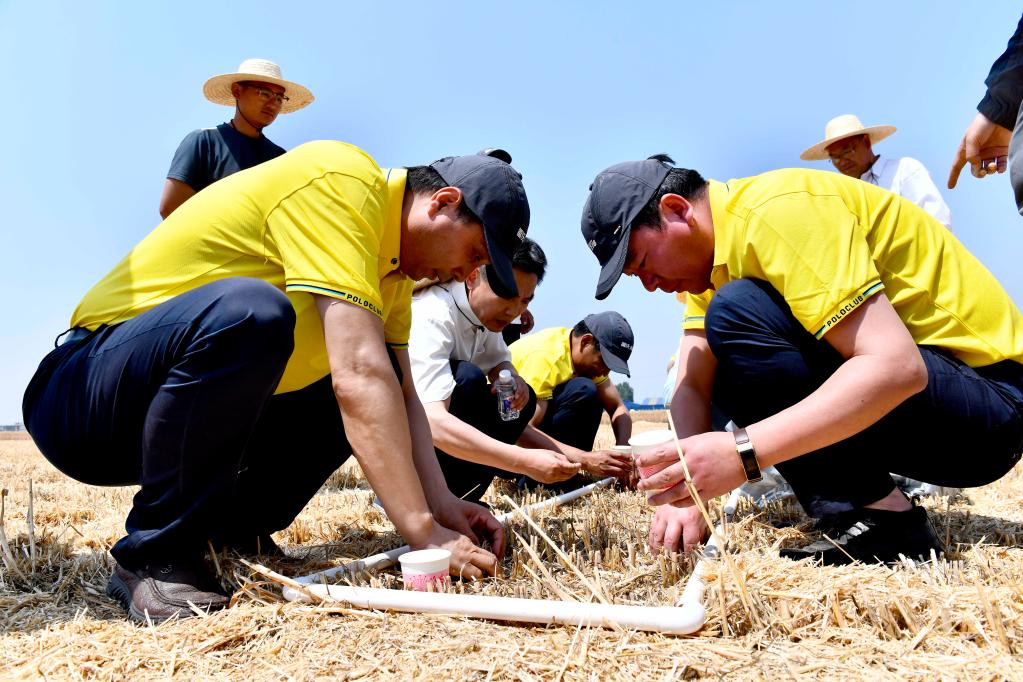 山东省农机使用一线“土专家”王允泉说:“裁判从作业区选取2个至3个同等面积的点位,将遗漏的麦穗、麦粒捡起来称重,计算平均重量,再与亩产平均值对比,得出机收损失率。”