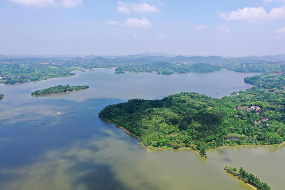 2021年5月17日拍摄的江苏溧阳天目湖景色(无人机照片)。新华社记者 季春鹏 摄