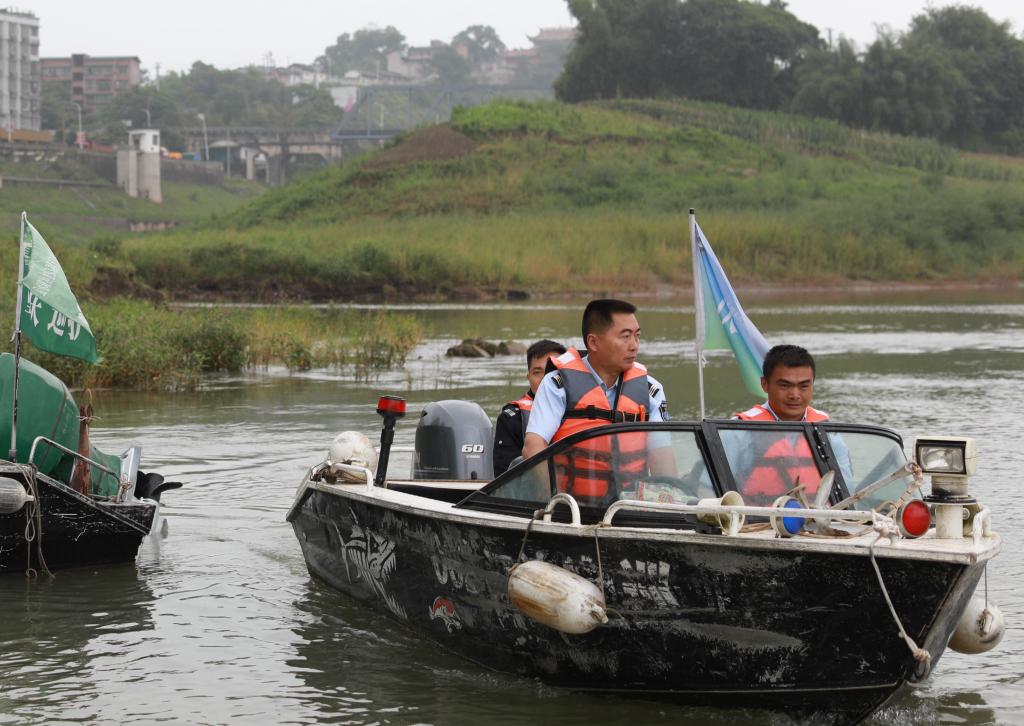 鸿鹄护鱼志愿队在江面上巡护。 新华社记者 周文冲 摄