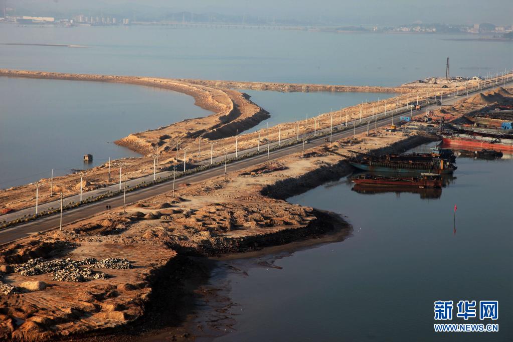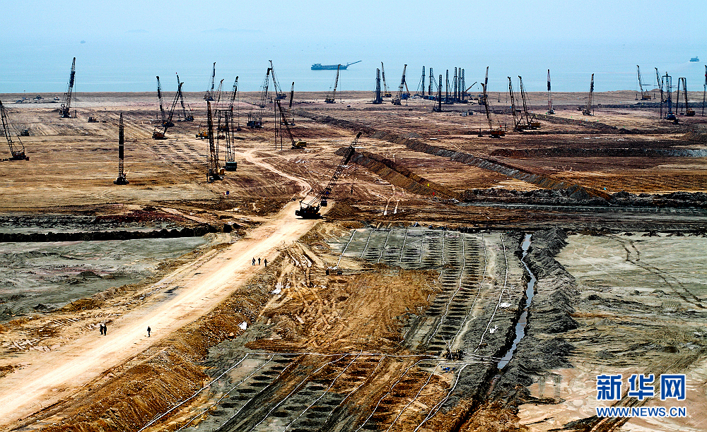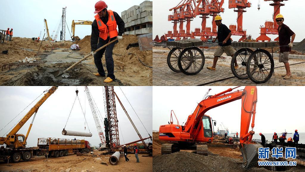 这是广西钦州港码头修建时的场景(2007年1月16日摄)。新华社记者 张爱林 摄