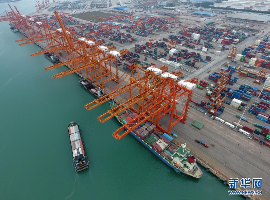 这是广西钦州港集装箱码头(无人机照片,1月14日摄)。新华社记者 曹祎铭 摄