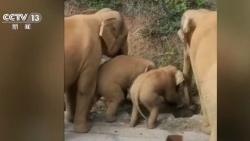 云南省森林消防总队信息通信处助理员 杨翔宇:我印象最深刻的就是在玉溪的玉溪大河地界,我们的野象群他在观察通过玉溪大河的道路以及条件,但是由于玉溪大河的阻拦,他没有办法直接通过。我们的工作人员就利用挖掘机给玉溪大河两侧开设了平摊的缓坡,供他通过,大象也是在几个小时的辗转之后顺利通过了玉溪大河。