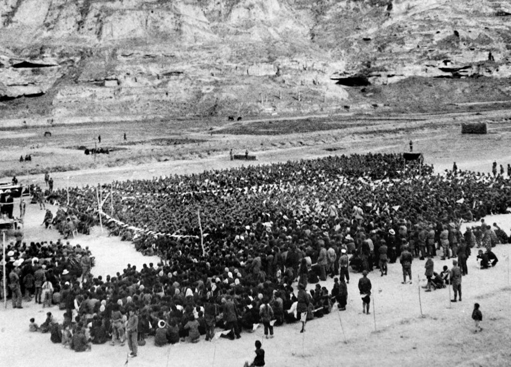 1942年,延安“九一”扩大运动会吸引到1300余名运动员参赛,这次运动会也成为延安时期党中央举行的规模最大的一次体育盛会:田径场设在延河西岸的沙滩上;游泳、跳水放在了延河;篮球、排球场建在北山根一块平坦的土地上;赛场附近的山坡成了观众的天然看台。