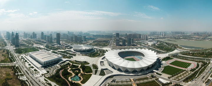 5月22日,无人机拍摄的第十四届全运会主场馆西安奥体中心。新华社发